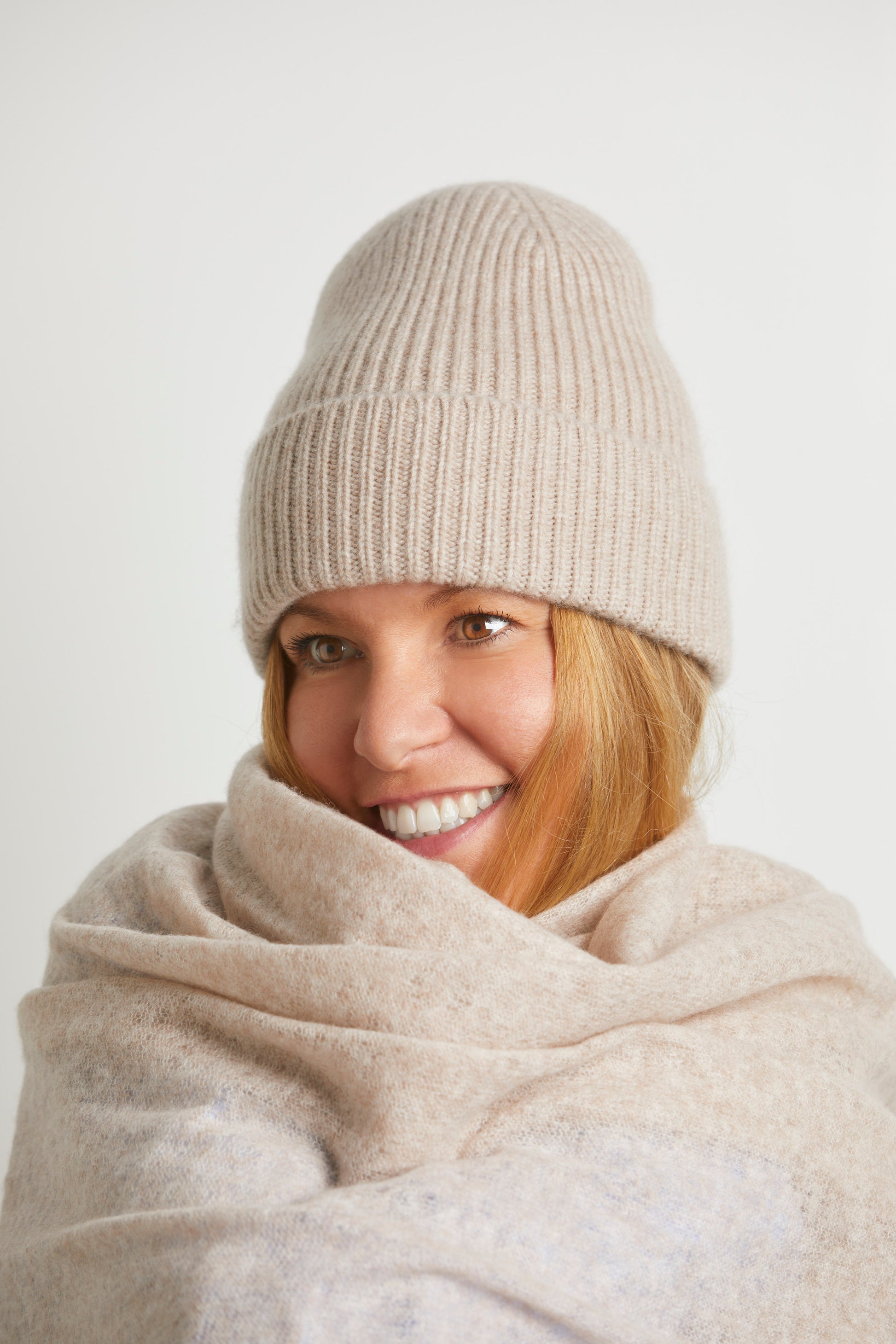 Ein Hauch Liebe: Dieser handgewebte Schal aus federleichtem, oekozertifiziertem Kaschmirgarn wärmt, ohne zu beschweren, und schmeichelt durch seine sehr weiche, luftige Textur. Mit feinen Fransen an den Enden für das gewisse Etwas. Ein zeitloses Allroundtalent.