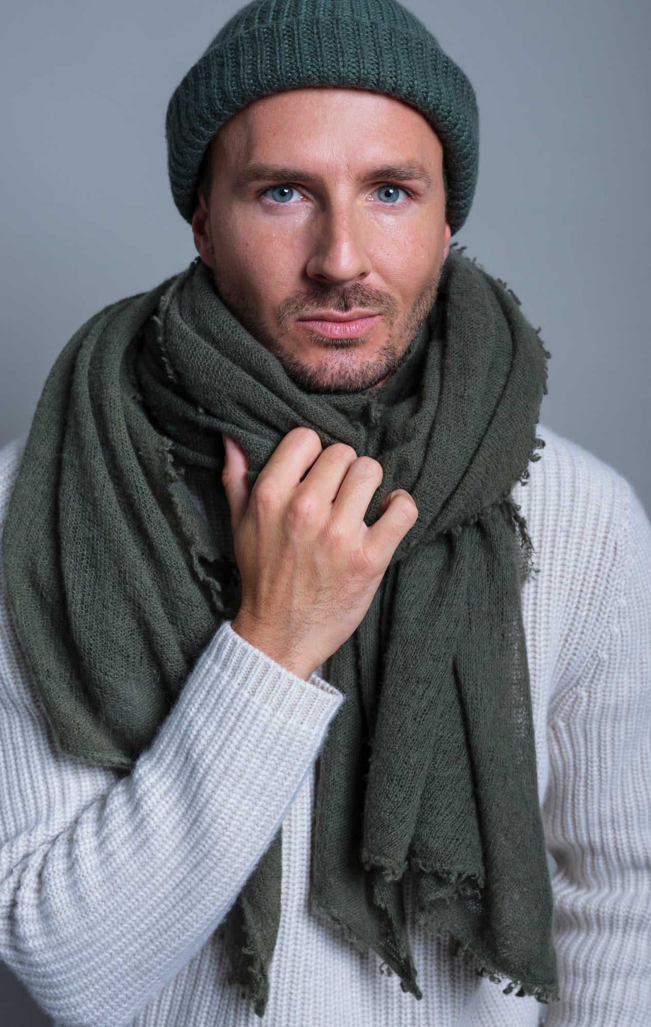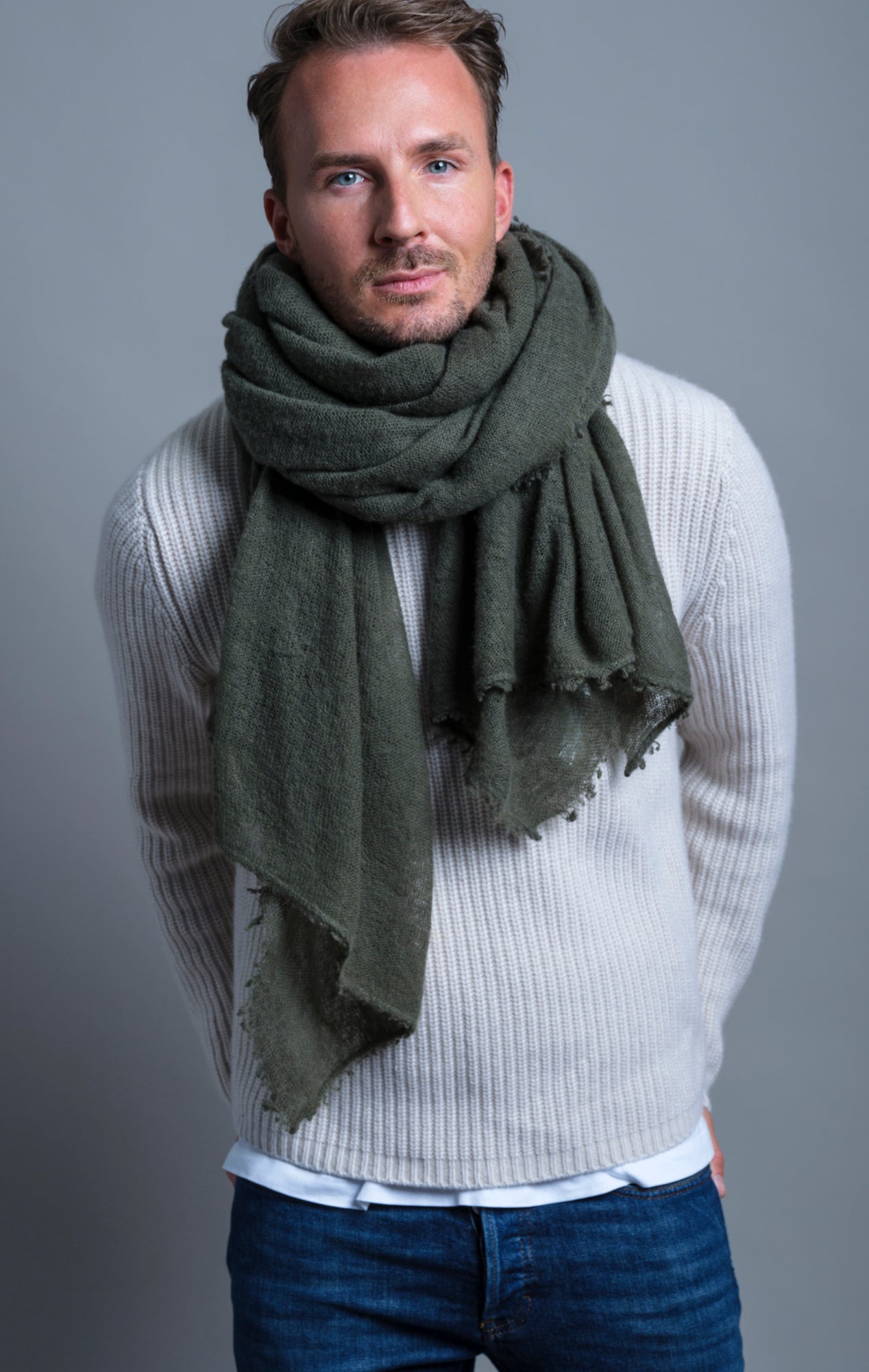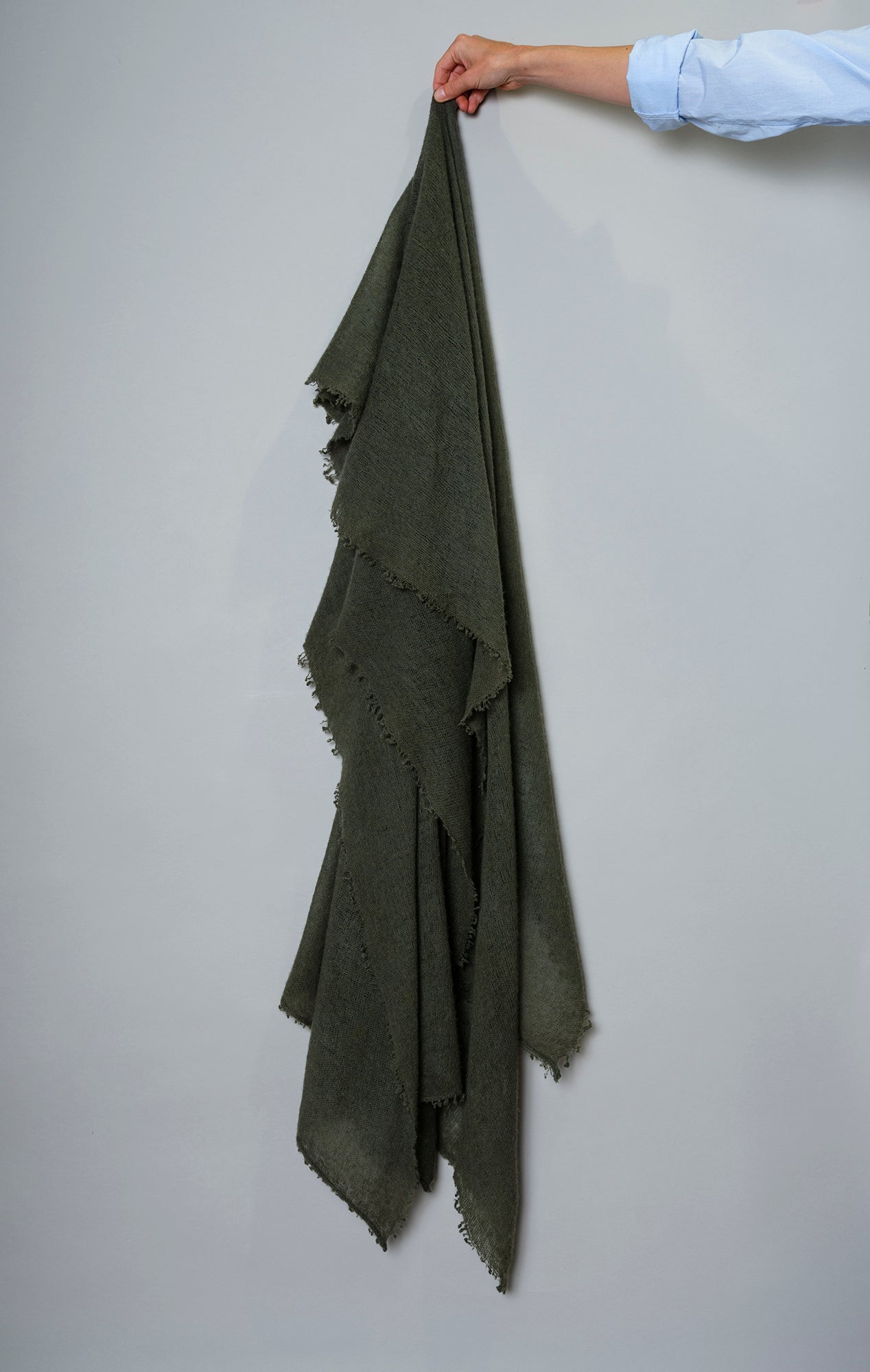 Ein Hauch Liebe: Dieser handgewebte Schal aus federleichtem, oekozertifiziertem Kaschmirgarn wärmt, ohne zu beschweren, und schmeichelt durch seine sehr weiche, luftige Textur. Mit feinen Fransen an den Enden für das gewisse Etwas. Ein zeitloses Allroundtalent.