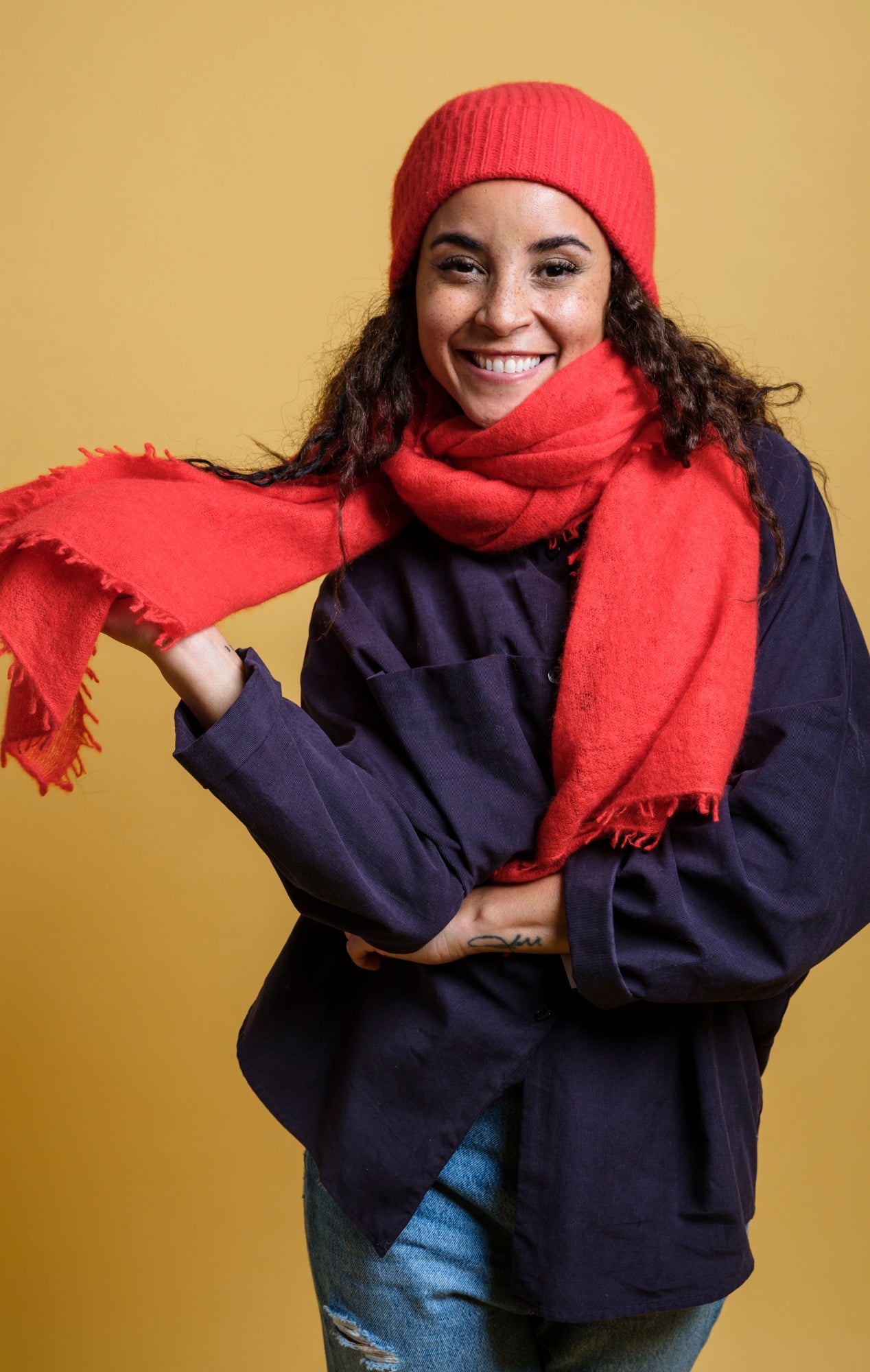 Ein Hauch Liebe: Dieser handgewebte Schal aus federleichtem, oekozertifiziertem Kaschmirgarn wärmt, ohne zu beschweren, und schmeichelt durch seine sehr weiche, luftige Textur. Mit feinen Fransen an den Enden für das gewisse Etwas. Ein zeitloses Allroundtalent.